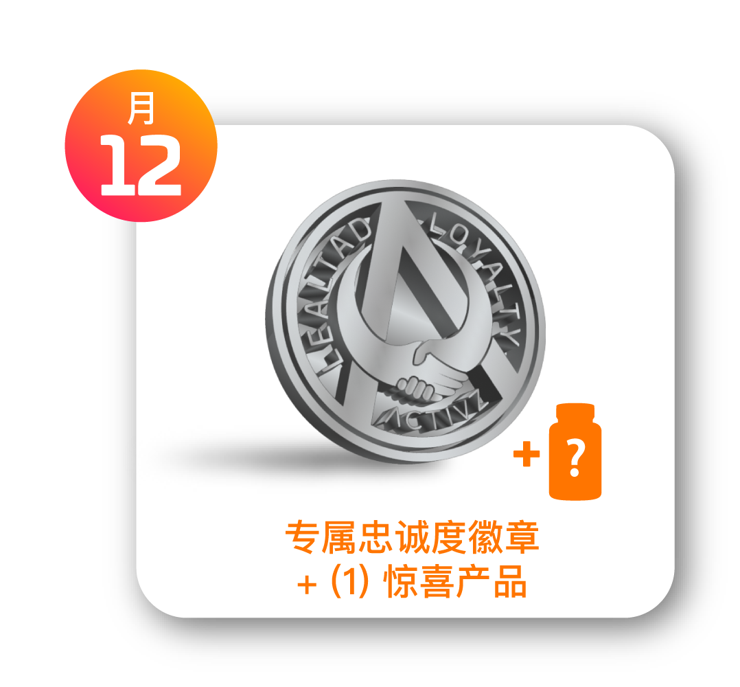 我们设计了专属的自动订购计划,以奖励你通过长期使用 ACTIVZ 产品对自己和健康的承诺。 作为一名尊贵且活跃的经销商,月度自动订购订单至少达到100 PV,你将自动解锁专属奖励,以表彰我们对你忠诚度的感激之情。